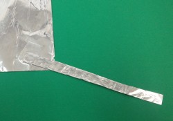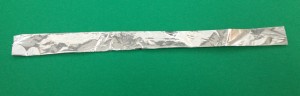 2.アルミホイルを適当なサイズに切り、1cm幅くらいの細長い短冊に折ります。