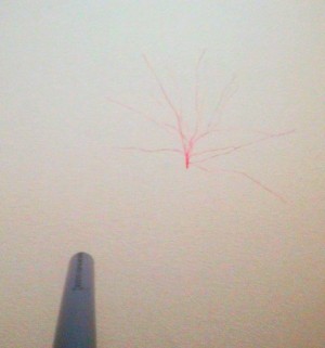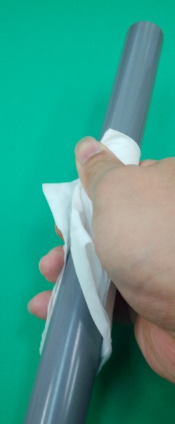 8.塩ビパイプもティッシュペーパーで一生懸命こすり、帯電させます。